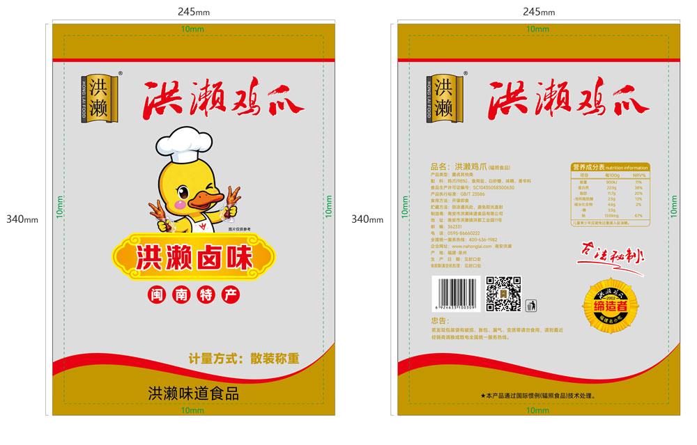 ??洪瀨品牌創立于2002年,2001年向國家商標總局申請注冊“洪瀨”商標,2002年"洪瀨"商標注冊成功,之后多年在閩南泉州這片有著深厚飲食文化底蘊的土地上用“前店后廠”批發的形式出現,主要從事雞爪為主的醬鹵系列食品生產銷售。